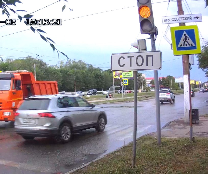 05/08/2021 Пересечение улицы Советской и переулка Советского. Проезд на запрещающий движение сигнал светофора. Госномер нарушителя Р039АЕ 174.