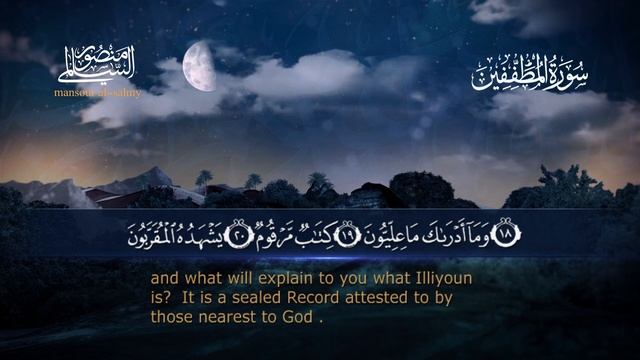 Qira'at - Qur'an Чтение - Корана Красивое чтение Корана Quran with English subtitles. Коран с английскими субтитрами. Reader: Mansour al-Salmi Чтец: Мансур ас-Салими Source YouTube channel: "Mansour al-Salmi" Источник YouTube канал; " Mansour al-Salmi "