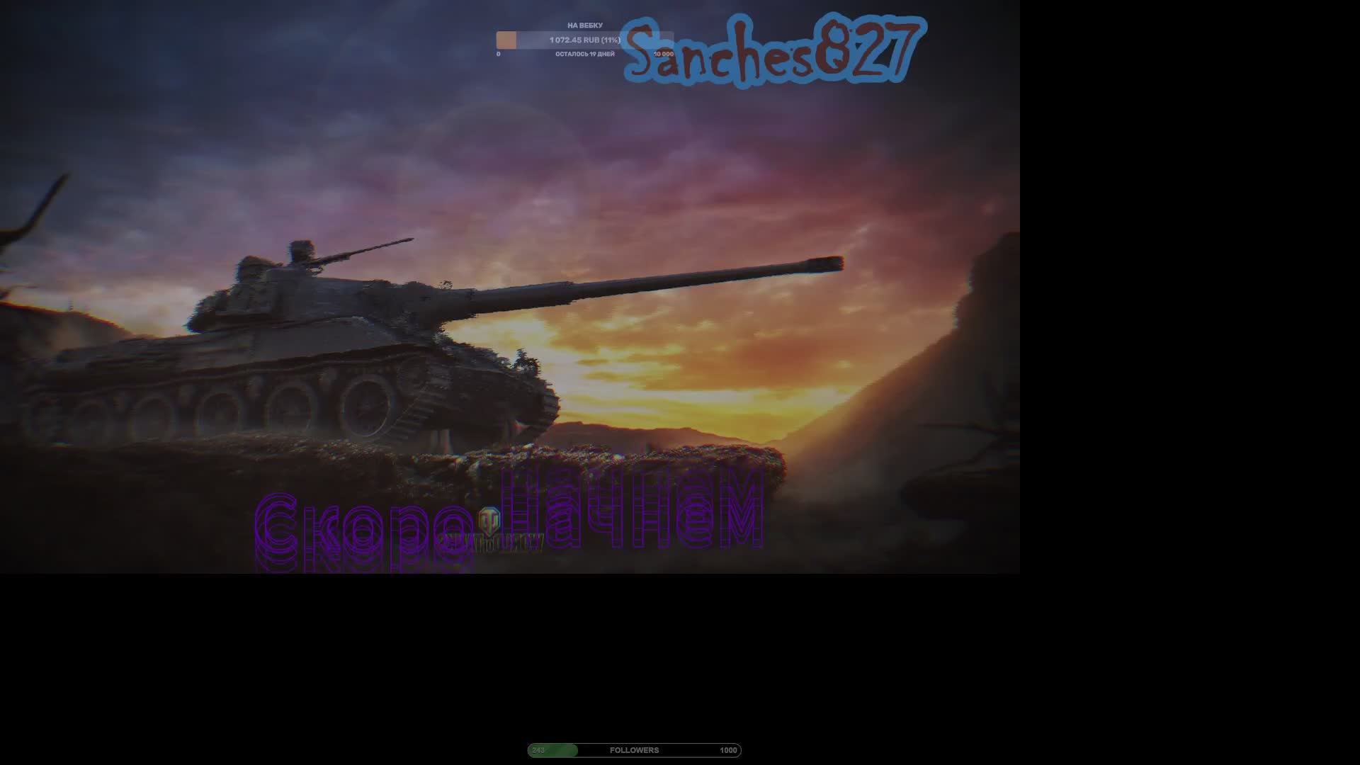 Сегодня Мир танков Всем привет! Я из Уфы стримлю относительно недавно) На моем канале вы можете увидеть: - Танки в разных их проявлениях от игры взводом до укрепрайонов и ГК играю с 2014 года правда был перерыв, активно с 2016) - Прохождение Игр -Escape from Tarkov Смотрите плейлисты там и танки и уже внушительная коллекция пройденных игр, правда большая часть на ютубе, но и тут будем потихоньку добавлять)))) - Мой канал на TROVO: https://trovo.live/s/Sanches827/219076542 -Мой Youtube канал : https://www.youtube.com/channel/UCqR7KbEHreLW_kfcSaAsvQw/featured - Мой канал на Twitch: https://www.twitch.tv/sanches827 -Мой канал VK Play : https://vkplay.live/sanches827 - Мой телеграмм канал: https://t.me/Sanches_827 -Мой дискорд канал: https://discord.gg/JV4X8BUm -Сообщество в ВК (ВК видео) : https://vk.com/club228343259 - Поддержка канала: https://www.donationalerts.com/r/sanches827 https://boosty.to/sanches827/donate Сбер 4279 3806 4032 6437