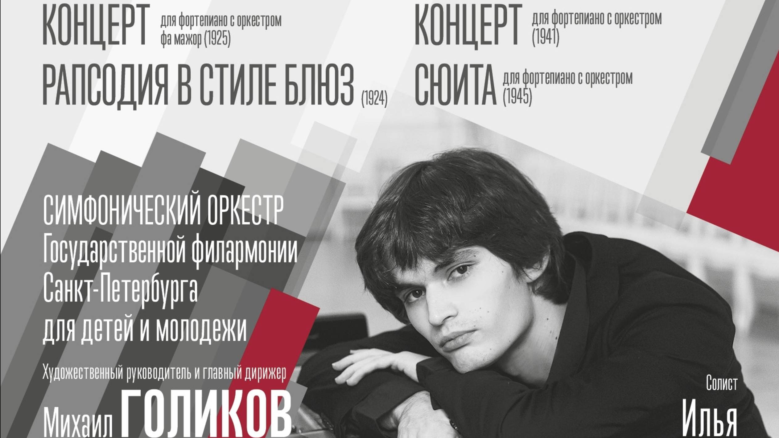 Филармоническое общество Санкт-Петербурга 10 сентября 2025 года Санкт-Петербургская академическая филармония им. Д.Д. Шостаковича БОЛЬШОЙ ЗАЛ ГЕРШВИН И ЦФАСМАН - ДВА ГЕНИЯ ДЖАЗА Симфонический оркестр Санкт-Петербургской государственной филармонии дЛя детей и молодежи Художественный руководитель и главный дирижер Михаил ГОЛИКОВ Солист – Илья ПАПОЯН (фортепиано) Для сотрудничества по спец.проектам: Booking & PR: +79852267676, pr@tabriz.ru Друзья, так же подписывайтесь на официальные группы в других социальных сетях: Личная страница ВКонтакте: https://vk.com/ilia.papoian.official Официальная группа ВКонтакте: https://vk.com/ilia.papoian_official.group Официальная группа на Facebook: https://www.facebook.com/groups/ilia.papoian.official.group/?notif_id=1720943556405679¬if_t=groups_member_joined&ref=notif Официальная страница в Instagram: https://www.instagram.com/ilia.papoian.official?igsh=MXRzbWJmOWdmNGY0 Официальный канал на YouTube: https://www.youtube.com/@juliaartur1