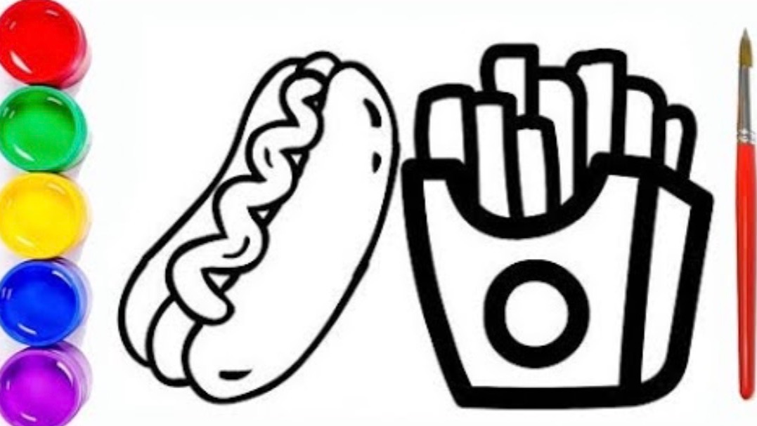 Мультик раскраска для детей и малышей. Как нарисовать рисунок бургер #рисунок#раскраска#мультик