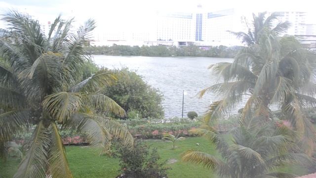 Из окна отеля-ветер ,пальмы и лагуна.