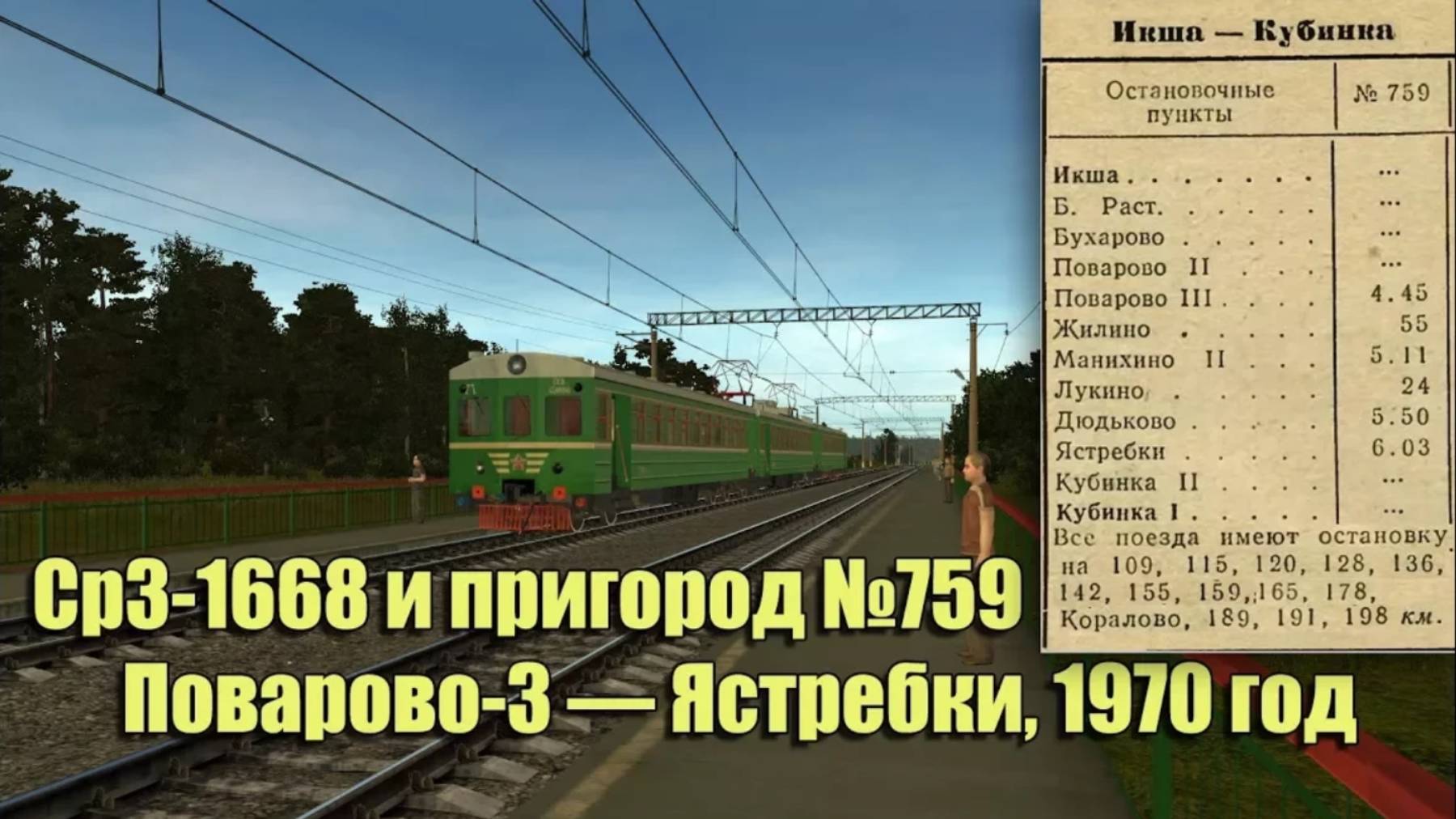 Trainz: Ср3-1668, рейс №759 Поварово-3 — Ястребки, 1970 год