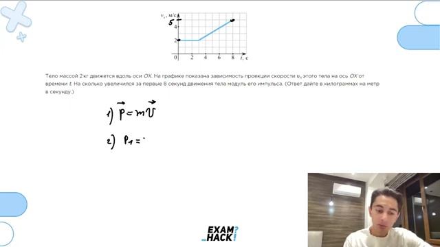 Тело массой 2 кг движется вдоль оси OX. На графике показана зависимость проекции скорости - №23024
