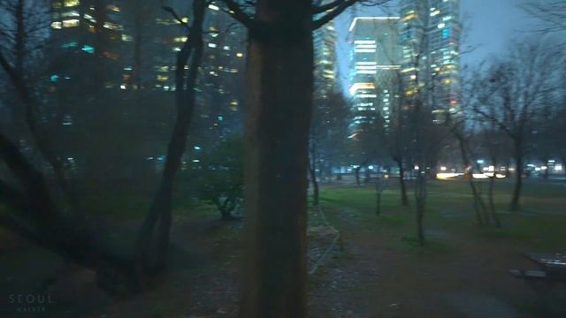 [4K HDR] Walk on a Rainy Night in Seoul Forest Park with Binaural Rain Sounds