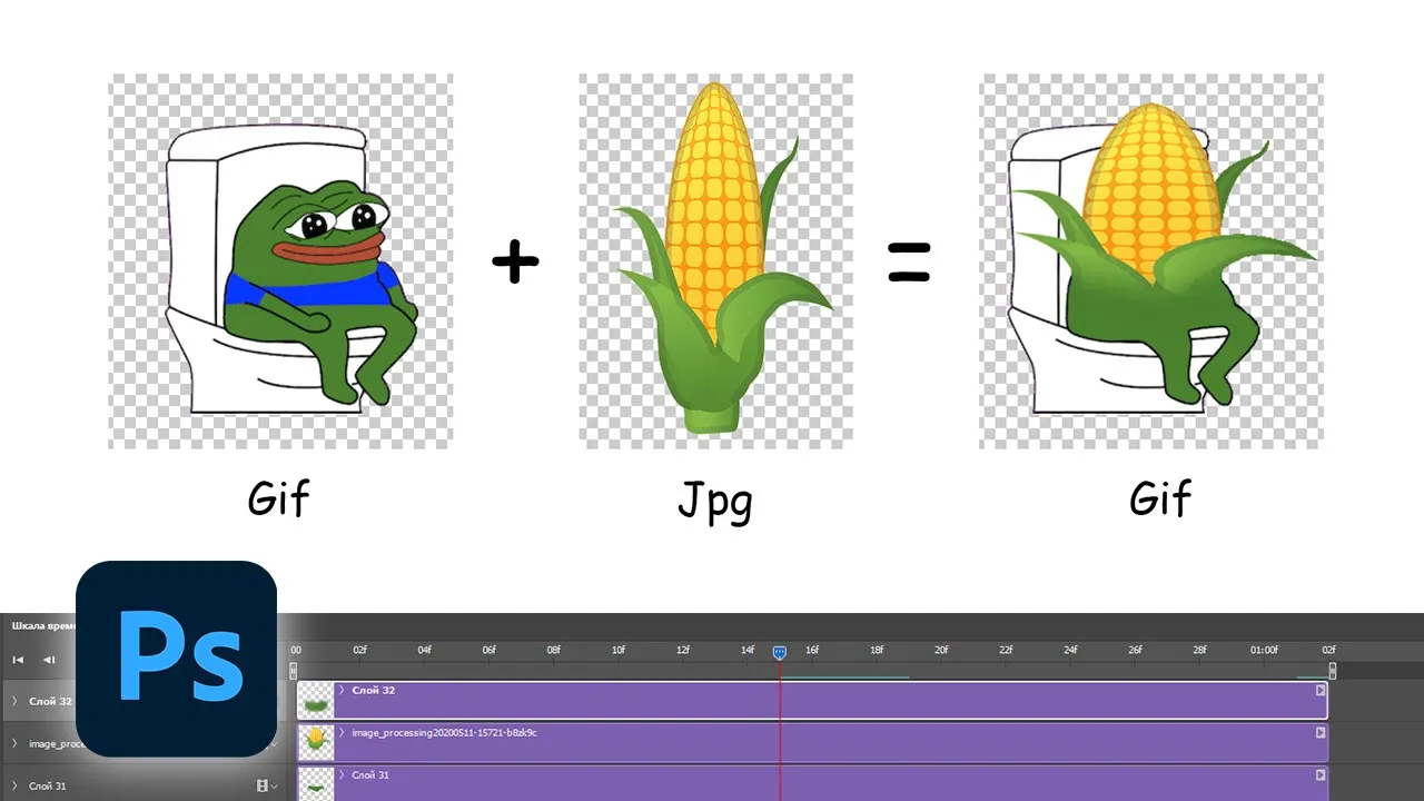 Как соединить гифку с картинкой в фотошопе