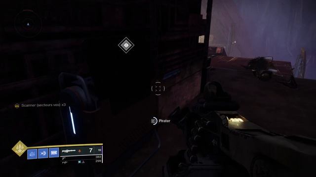 Gameplay de la localisation du vandal chef d'escouade techno pour récupérer le buff scanner "secteur vex" ainsi que la localisation des moniteurs et drones à éliminer pour le triomphe secret " Augmentation : Nexus "