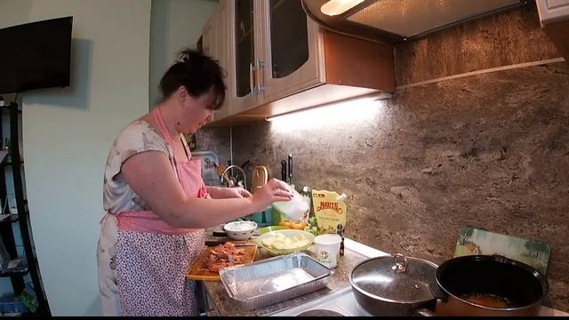 В гостях у Анжелины. Готовим мальму в духовке с картофелем. Посиделки на кухне.
