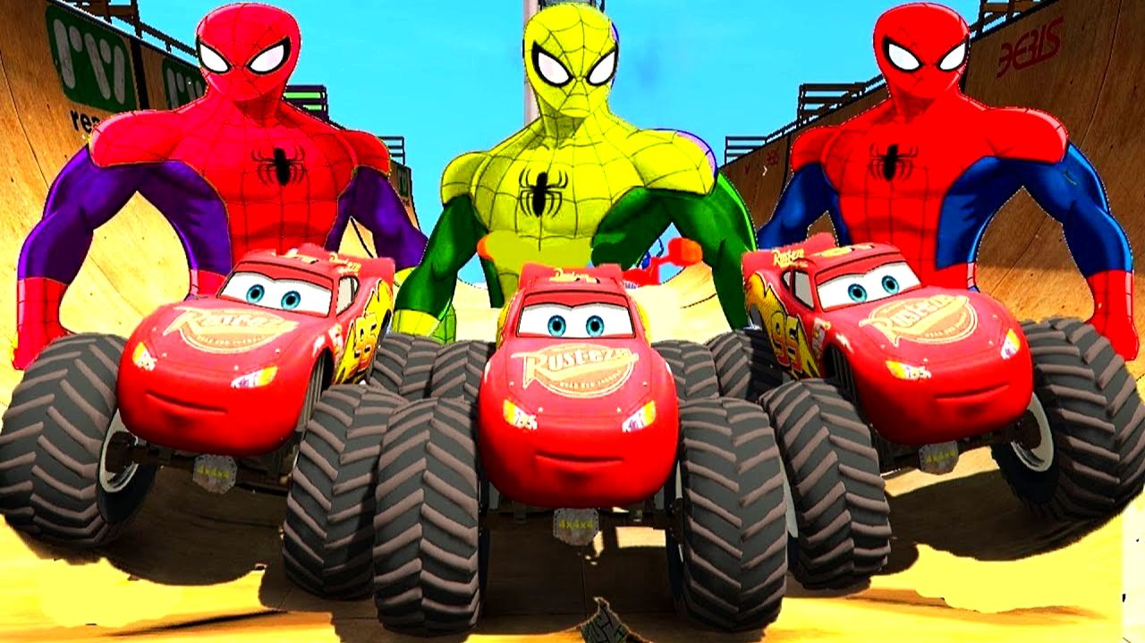 Человек-паук и Монстр-Трак Молния Маккуин Тачки. Мультфильм для детей. Мультики про машинки.