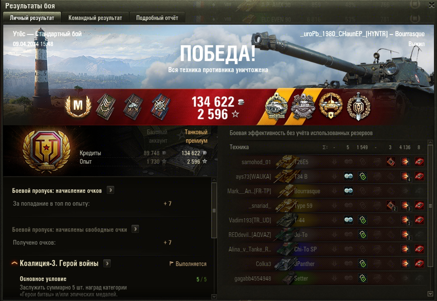 УТЁС МАСТЕР на Bourrasque ОПЫТ: 1573 СУММАРНЫЙ УРОН: 5685 медаль РЭДЛИ ВОИН КАЛИБР