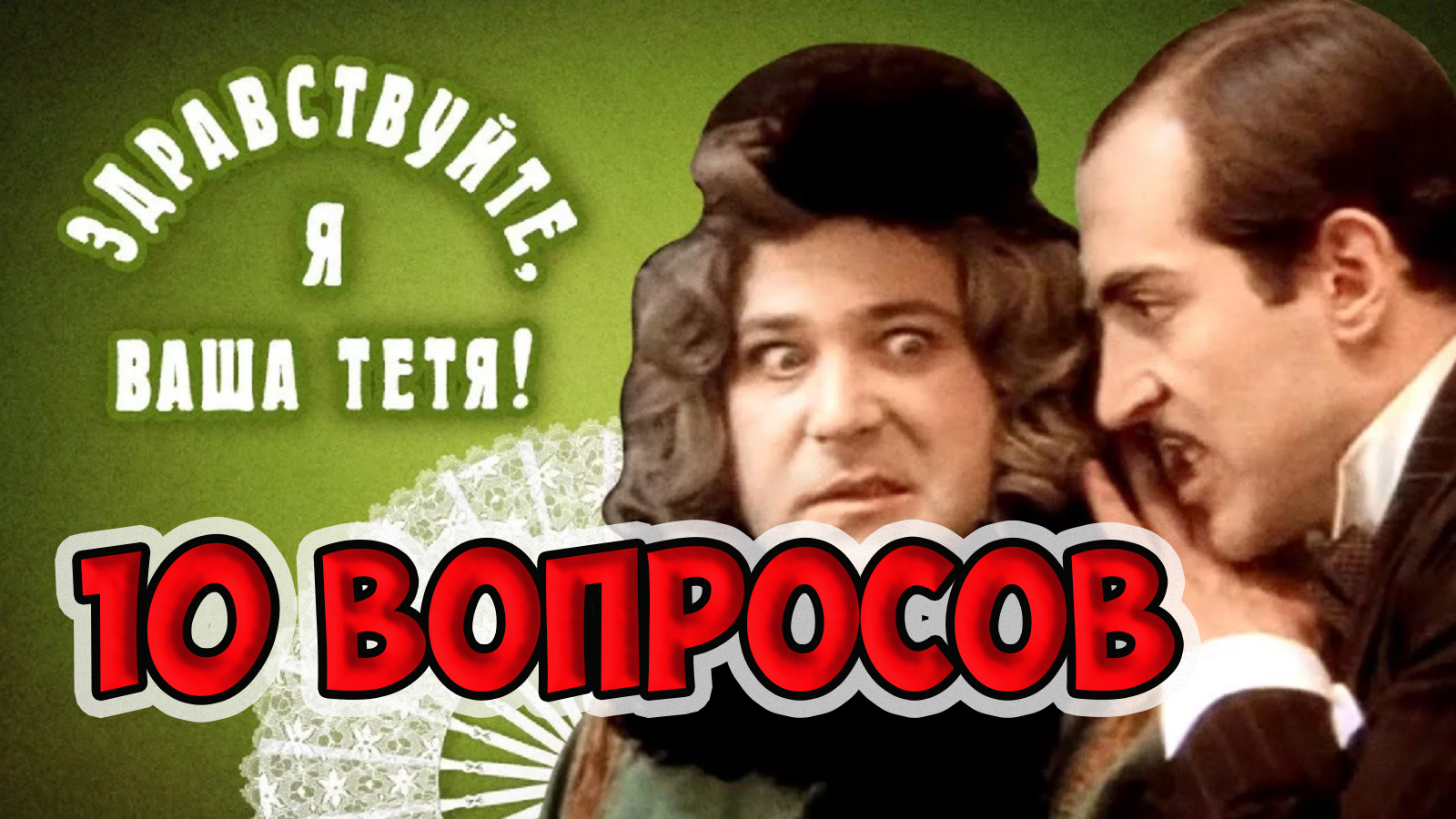 Здравствуйте! Рады видеть вас на нашем канале "АТТЕСТАЦИЯ МОЗГА"! Сегодня хотим предложить вам вспомнить замечательный советский фильм "ЗДРАВСТВУЙТЕ, Я ВАША ТЁТЯ!", а для этого придется ответить на 10 простых вопросов. На роль «тётушки» претендовали Олег Табаков, Евгений Леонов, Александр Калягин и абсолютно некомедийный актёр Евгений Матвеев. По результатам проб был выбран Калягин, который очень обрадовался работе. При создании образа актёр ориентировался на архивные женские журналы и на Чарли Чаплина, а костюм донны Розы носил даже в перерывах, только парик снимал. ***************************************************************************** 1. Для ответа на каждый вопрос вам дается по 10 секунд 2. По истечении 10 секунд будет дан правильный ответ. Желаем удачи! #тест#аттестациямозга#эрудиция#фильм#кино#советскоекино