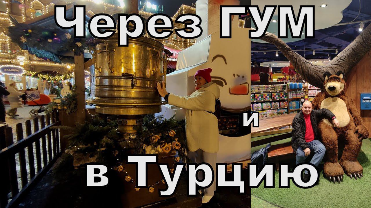 Начинается наше новое путешествие. Мы едем в Турцию в надежде ухватить ушедшее от нас лето и тепло. По пути решили прогуляться по предновогодней Москве. Не пожалели, очень красиво. ГУМ, Детский Мир и Красная площадь в зимних нарядах и с выставками.