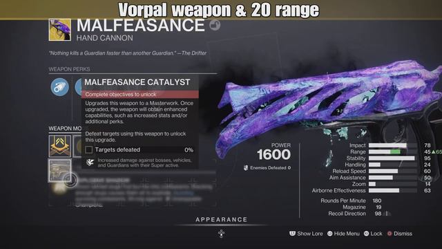 Destiny 2: What does the catalyst for malfeasance give it?
