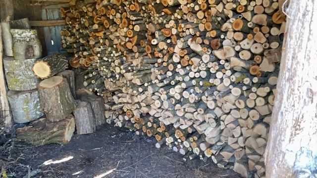 2024-04-04 УБИРАЕМ СТАРЫЕ ДЕРЕВЬЯ ВОКРУГ ДРОВНИКА