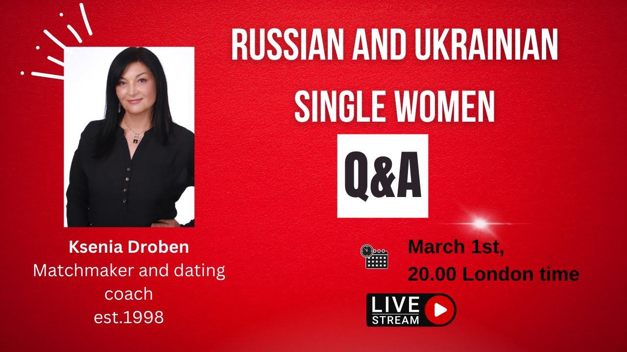 Dating and Matchmaking Advice - how to meet and date Single Women from Russia and Ukraine Want to meet beautiful single Russian and Ukrainian girls? Looking for Ukrainian or Russian singles for dating, or marriage? Droben International Matchmaking agency will help you find your special Russian or Ukrainian girl. Contact us now! Ksenia Droben Matchmaking Agency and Dating coaching www.droben-matchmaking.com www.bridespb.com Whatsapp +49 1520 366 3653 or +44 7458 336260