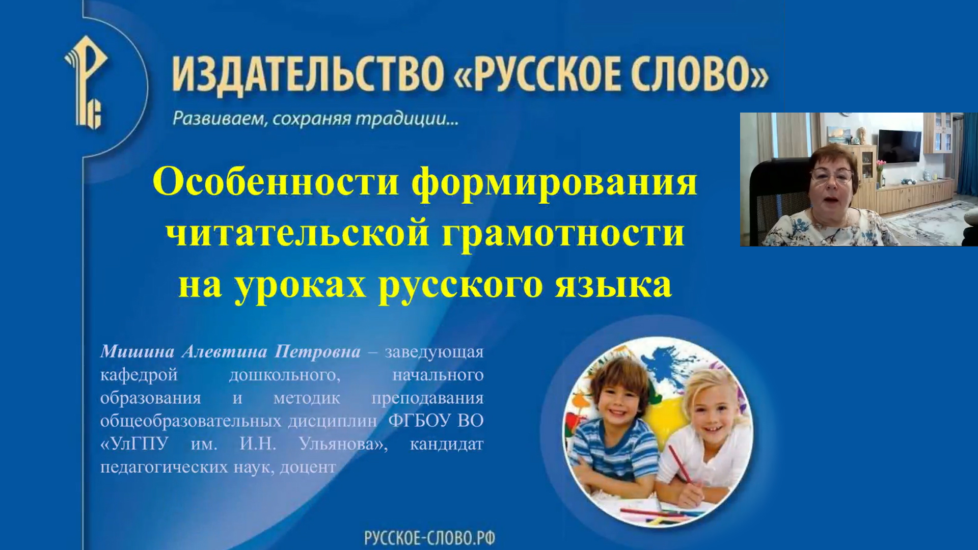 Ведущая: Мишина Алевтина Петровна, кандидат педагогических наук, доцент, заведующий кафедрой дошкольного, начального образования и методик преподавания общеобразовательных дисциплин факультета образовательных технологий и непрерывного образования ФГБОУ ВО «Ульяновский государственный педагогический университет им. И.Н. Ульянова». Основные вопросы вебинара: 1. Понятия «читательская грамотность» и «читательская компетентность». 2. Уровни сформированности читательской грамотности и основные недостатки современного школьного образования. 3. Структура читательской грамотности. 4. Особенности формирования читательской грамотности на уроках русского языка. 5. Возможности учебников Л.В. Кибиревой, Г.И. Мелиховой и О. Клейнфельд: система заданий на формирование читательской грамотности. Присоединяйтесь к нам в социальных сетях! Издательство «Русское слово»: ВКонтакте: https://vk.com/rus_slo Одноклассники: https://ok.ru/group/57720246435859 #Русское_слово, #Вебинары_РС #начальнаяшкола #русскийязык