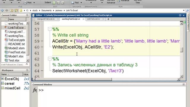 В ролике пошагово показано, как на основе написанного класса осуществлять взаимодействие MATLAB и Excel.