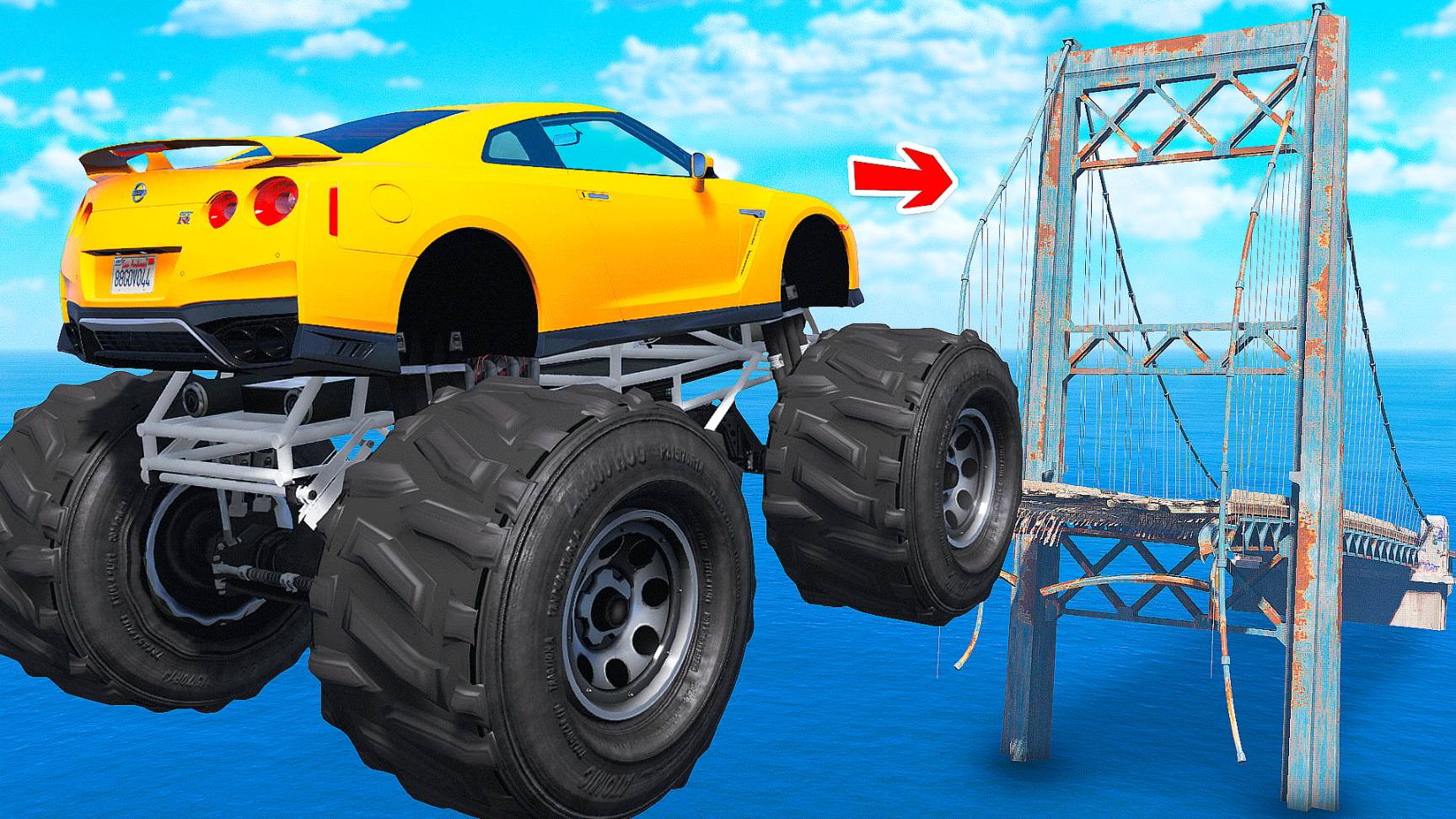 СМОЖЕТ ЛИ ГИГАНТСКИЙ НИССАН ГТР ПЕРЕЛЕТЕТЬ СЛОМАННЫЙ МОСТ В ГТА 5 МОДЫ - ЭКСПЕРИМЕНТЫ в GTA 5 MODS