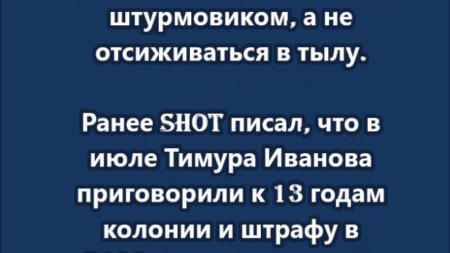 Осуждённый на 13 лет экс-замминистра обороны Тимур Иванов заявил, что готов отправиться на СВО