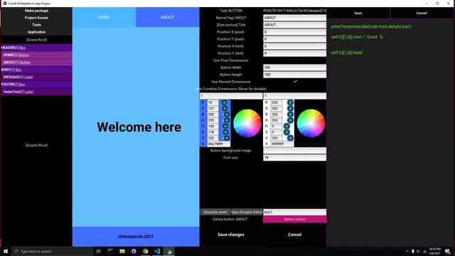 Based on kivy 2.0 python framework. GPL-3.0 License with avavailable source code. CrossK is a small but conspiratorial app engine based on kivy opengles2.0 in background. Created to make future fast and quick. No builds losing time any more. Python works fast and optimised. Download and make fork and you are free to collaborate, please you are welcome. Download link current ver 0.4.0 : https://github.com/zlatnaspirala/cross-k Objective: Create multiplatform target builds with real time net driver. Basic : 2D UI visual app creator. Future features player, networking, 3d/2d canvas based engine. Because html5 is excluded for now from this story maybe some real time networking makes fit for all platforms. In basic we can create server-client native application for any platform (desktops, android) This is the beginning of a beautiful friendship... Hall of the Mountain King by Kevin MacLeod is licensed under a Creative Commons Attribution 4.0 licence. https://creativecommons.org/licenses/by/4.0/ Source: http://incompetech.com/music/royalty-free/index.html?isrc=USUAN1200072 Artist: http://incompetech.com/