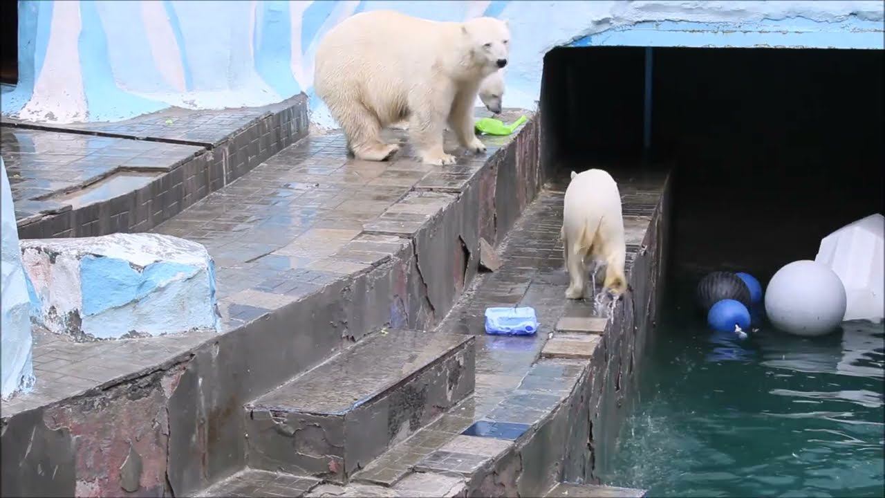 Герда родилась в Москве 20 ноября 2007 года. Её мама Симона, папа Врангель. В Новосибирск переехала 05.08.2008. В 2013 году у Герды и Кая родилась Шилка. В 2015 году она переехала в Японию. В 2015 году родился Ростик. 6 декабря 2018 года он переехал в Китай. В 2018 году родились Норди и Шайна. Данная пара молодых медведей находилась вне экспозиции зоопарка, поэтому посетители не могли их видеть. Передача молодых медведей в другой зоопарк не планируется, — ответили на запрос редакции в пресс-центре мэрии Новосибирска. Но Шайна 20 января 2024 года переехала в Ижевский зоопарк. Белые медведи одиночные животные. Как правило, миролюбивы по отношению друг к другу, но между самцами в брачный период случаются стычки. Взрослые самцы могут нападать на медвежат. Гон с марта по июнь. Продолжительность жизни — максимум 25—30 лет; в неволе рекорд долгожительства — 42 года. Вес очень крупных самцов в некоторых частях ареала 700 и даже 800 кг: есть данные о зверях весом до 1000 кг. Обычно вес меньше. Самки всегда не только меньше, но и значительно легче самцов. Так, самцы в восточной Гренландии в состоянии нормальной упитанности весят 400—450 кг, хорошо упитанные — до 500 кг, самки, даже очень сытые, здесь же редко весят больше 350—380 кг, т. е. их вес составляет около 75% веса самцов. Длина тела на 3-й день после рождения 28—32 см, средний вес — около 755 г (650—840 г). На 26-й день длина тела увеличивается незначительно — до 35—38 см, а вес возрастает до 1125—1275 г. В возрасте 60 дней самцы весят около 7 кг, самки — около 6 кг при длине тела у первых 58—60 см, у вторых 54—58 см. В возрасте 4 месяца медвежата достигают веса 22—23 кг, в 6-месячном возрасте при длине около 110 см — 40—43 кг, в 8-месячном — 58—62 кг. Длина тела в возрасте с 6 до 9 месяцев нарастает по 6—7 см в месяц. Во время зимнего сна рост почти прекращается. В зоопарке медведей кормят утром морской рыбой, хлеб с рыбьим жиром внутри, морковь, яблоки, морская капуста, яйцо дают сырое. Медвежат подкармливают молоком из соски. На ужин мясо (говядина, конина, куры или индейка). Летом и осенью арбузы, дыни, ранетки, кабачки, тыквы, огурцы. Когда показательное кормление летом бросают живую рыбу. Медвежата с медведицей находятся до 2-х лет. 16 декабря 2022 года Герда родила 2-х медвежат. И это две девочки! Имена дали 25 июня. Медвежат зовут Стрелка и Белка. Обзор вольеров белых медведей https://www.youtube.com/watch?v=mAt_b7JD0B4&list=PLGvf0V-rAHxkpGKJaWIZIUxRKgKiqV3xZ&index=17&t=0s