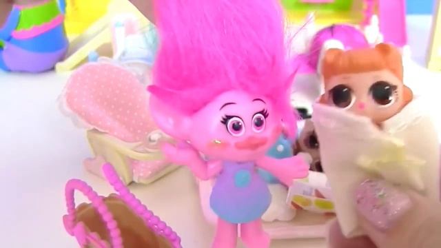 Троль Розочка в качестве няни для малышей