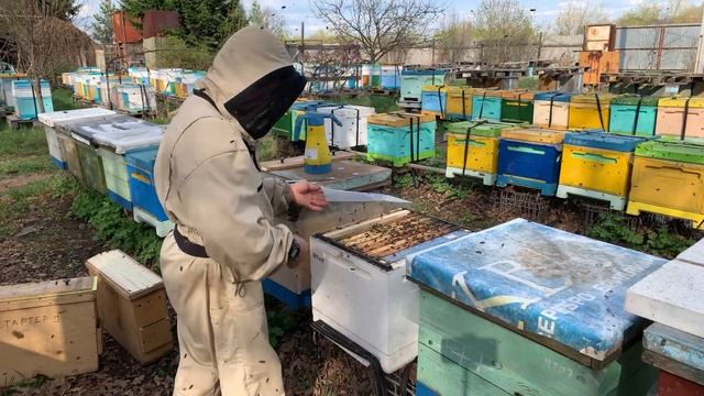 Работа с роевым ящиком # формирование стартера # семья с племенной маткой # перенос личинок и тд