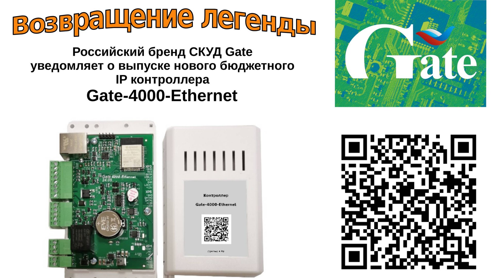 Российский бренд СКУД Gate официально уведомляет всех специалистов отрасли, партнёров и клиентов о выпуске нового контроллера доступа под наименованием «Gate-4000-Ethernet» — простого, универсального и самого бюджетного на рынке IP контроллера доступа. Бренд СКУД Gate уже 24 года разрабатывает и производит для отечественного рынка простые и доступные по цене продукты и технологии сферы контроля доступа. Давние и опытные специалисты сферы СКУД хорошо помнят популярную долгое время версию контроллера под именем «Gate-4000», по сути, легенду отрасли. Вот уже 10 лет, как в производстве он был заменён на новую версию Gate-8000, но на тысячах объектов продолжает неустанно работать и работать. А вот сейчас он вернулся — «загорелым и отдохнувшим», с новыми силами и возможностями, с новым интерфейсом, но с неизменными свойствами: ПРОСТО и НЕДОРОГО. С технической точки зрения он является более простой версией базового контроллера Gate-8000-Ethernеt, но существенно проще и дешевле, а также имеет сервисный Web-интерфейс для начальной настройки. Более подробная информация есть на сайте бренда: https://skd-gate.ru/produkty/gate/apparatnaya_chast/gate-4000-ethernet/ Обращаем внимание специалистов, что контроллер поддерживается в штатном ПО Gate-Server-Terminal начиная с юбилейной версии 1.22.100. Рекомендуем своевременное обновление ПО.