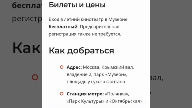 ? В «Музеоне» открылся бесплатный летний кинотеатр В одном из любимых парков на большом экране вы сможете посмотреть российские и зарубежные комедии, а также любимые мультфильмы. Это отличная возможность провести время с семьей и друзьями, наслаждаясь атмосферой летнего кино под открытым небом. ? 7 июля 22:00 — «Бюро магических услуг» ? 8 июля в 21:00 — «Яга и книга заклинаний» ? 9 июля в 21:00 — «Грозный папа» Вход свободный ?ул. Крымский Вал 2, площадь у Сухого фонтана #2023 #москва #кино #бесплатно
