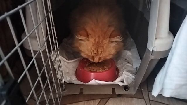 Котик Рыжик наездился и теперь просто ест