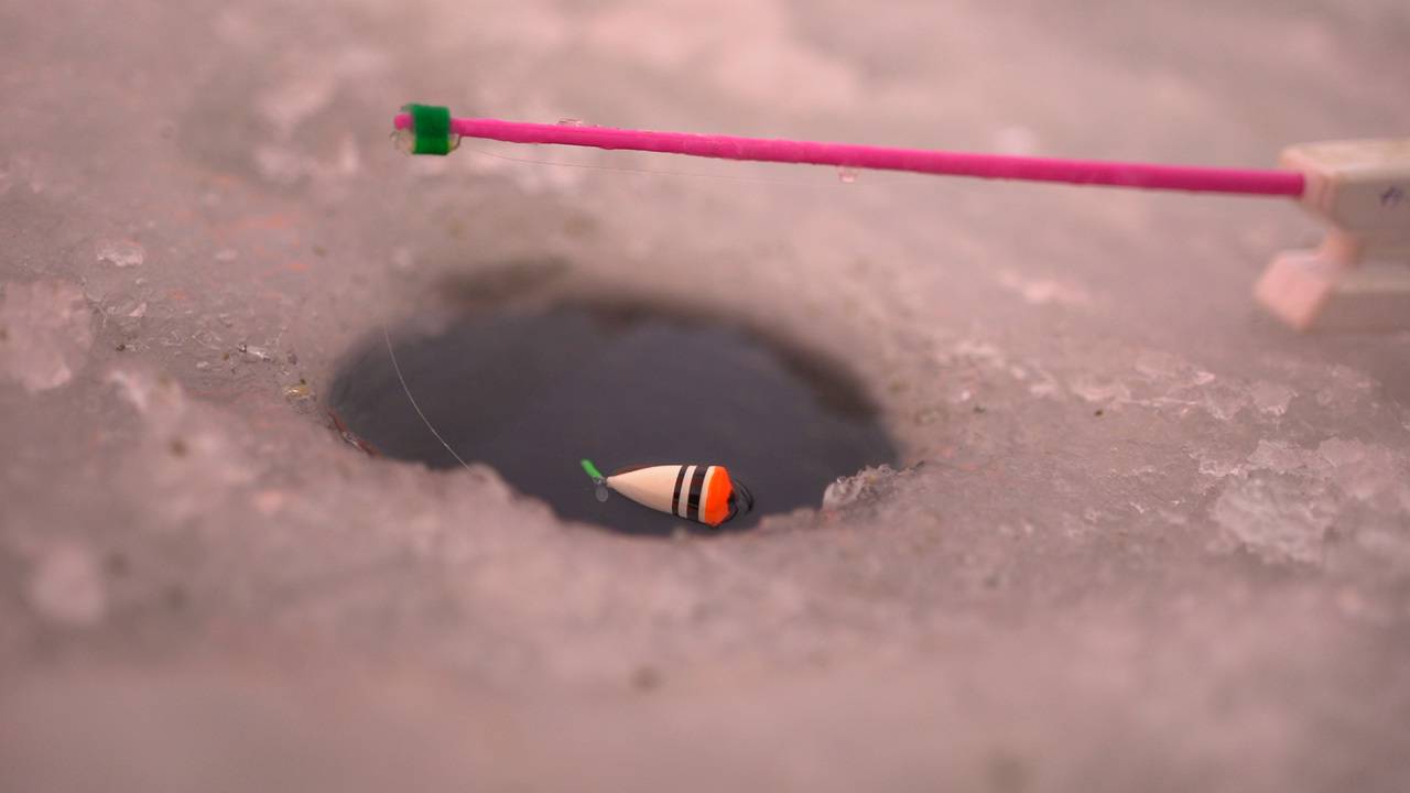 Поплавок зашевелился и он сразу же всплыл. Зимняя рыбалка