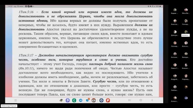№11. 1-е Тимофею 5:12-20 Ведущий: Александр Борцов 19.06.2024