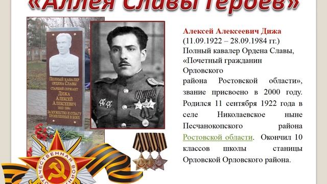 Медиа-презентация о героях Орловского района получивших звания "Героя Советского союза", "Героя социалистического труда", "Полного кавалера ордена Славы"