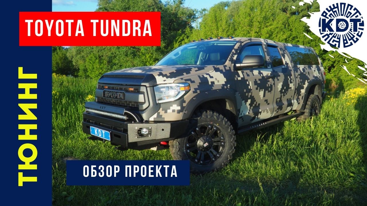 В этом видео мы подробно расскажем о ещё одном тюнингованном автомобиле, вышедшем из нашего Тюнинг-центра «КДТ». Смотрите обзор – это будет интересно!? Что же мы проделали на этой Тойоте Тундре 3го поколения? ✅Сделали нестандартную камуфляжную окраску антицарапным защитным покрытием «Армолайн». ✅Установили передний силовой бампер с лебёдочным клюзом, спрятанным под номерной знак. ✅Встроили светодиодную балку под кенгурином. ✅Заменили решетку радиатора на тюнинговую. Внутри разместили янтарную оптику, и пневмогудок. ✅Ещё установили задний силовой бампер также с лебёдочным клюзом, спрятанным под номерной знак. ✅Заменили амортизаторы ✅Сделали боди-лифт ✅Установили пневмоподвеску ✅Внутри кузова разместились: - компрессорная станция. Которая отвечает за подкачку колес, пневноподвеску и пневмогудок. - выкатная платформа для груза, где установлен хайджек, а также есть проушины для монтажа груза. ?И ещё много маленьких интересных штучек и решений о которых мы также расскажем в этом видео! Мы в соц.сетях: ? ВК https://vk.com/club144048718