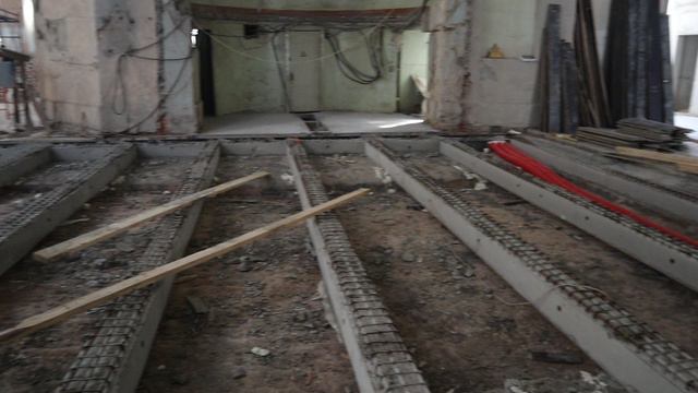 Залита бетоном арматура для балок, которые потом будут удерживать полы. Воскресенье, 8 сентября 2024