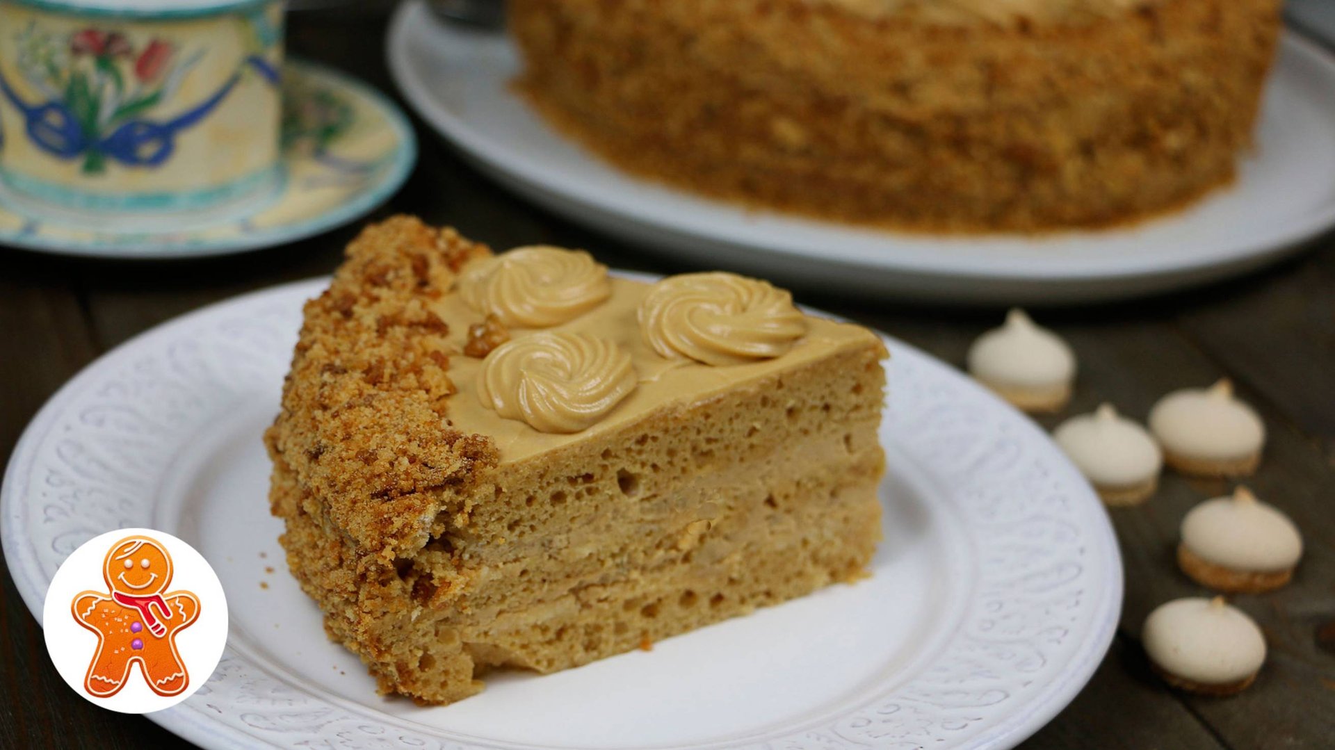 Для бисквита: 150 г вареной сгущенки 240 г муки 2 яйца 200 г сметаны 200 г сахара щепотка соды 5 г разрыхлителя для теста Для крема: 220 г вареной сгущенки 250 г сливок 35% 100 г сливочного масла 50 г грецких орехов Для пропитки: 50 г сливок Форма 24 см Вес торта - 1,3 кг Текстовый рецепт здесь - https://dzen.ru/a/aPSlcoK_YGsnkZ8n