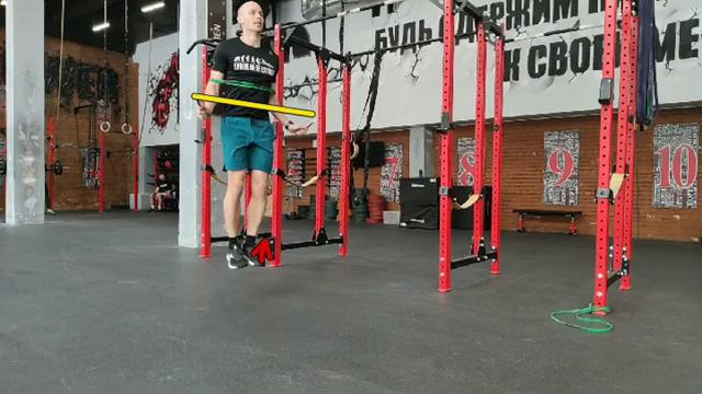 Двойные прыжки с резиной на локтях