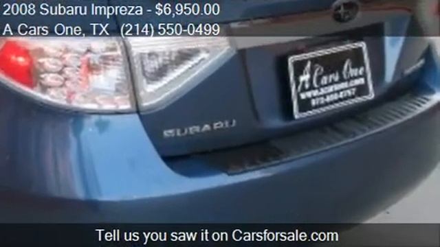 This 2008 Subaru Impreza 2.5i 5-door is for sale in Dallas, TX 75220 at A Cars One. Contact A Cars One at http://www.acarsone.com or http://www.carsforsale.com/used_cars_for_sale/2008_subaru_impreza_225193399 Engine: 4-Cylinder B4, 2.5L; SOHC Transmission: Automatic Color: Blue Mileage: 150369 Contact A Cars One 2820 Ladybird Lane Dallas, TX 75220 to test drive this 2008 Subaru Impreza 2.5i 5-door today.
