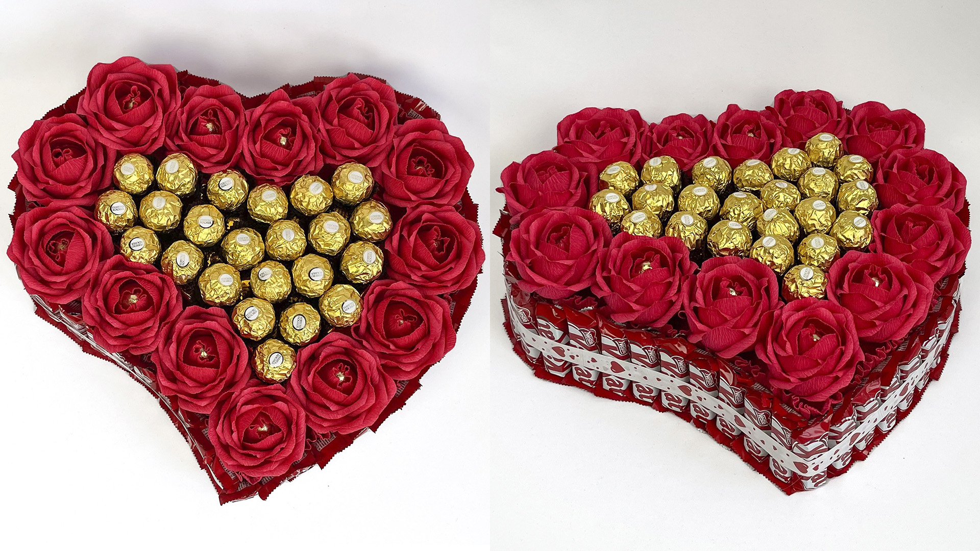 Мастер Класс Композиция из конфет. Торт сердце с Кит-Кат, розами и Ферреро Роше
