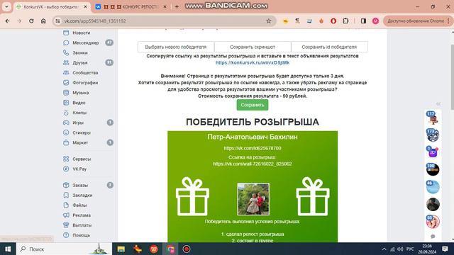 Конкурс репостов итоги 20.09.2024