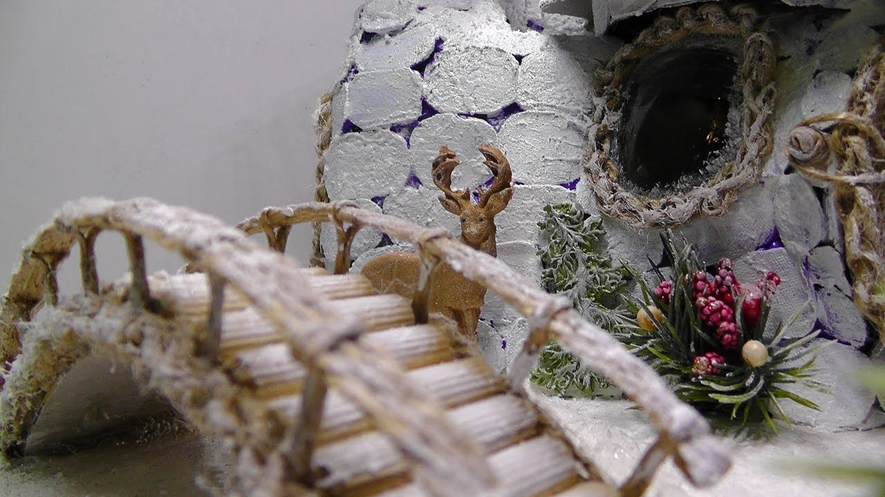 Новогодний домик с подсветкой из бутылок. Своими руками. DIY