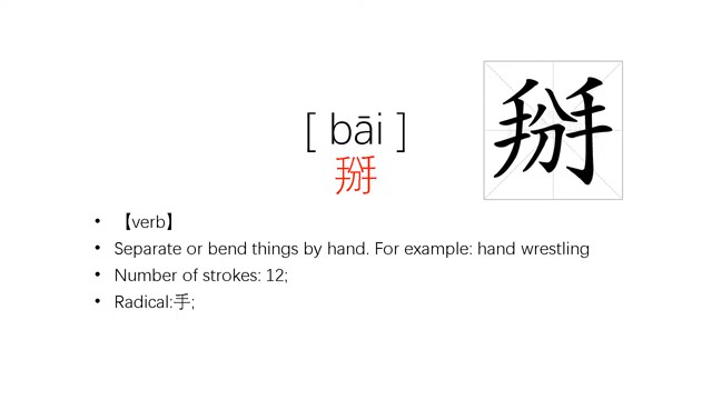 掰 (bāi) to break off or break open sth with one's hands; (fig.) to break off (a relationship)