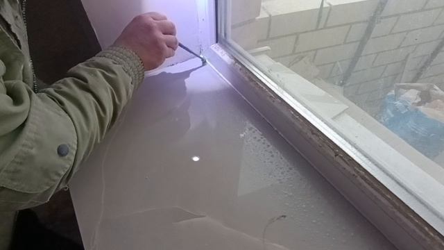 Стык окна и подоконника из керамогранита Заполняем сантехническим силиконом