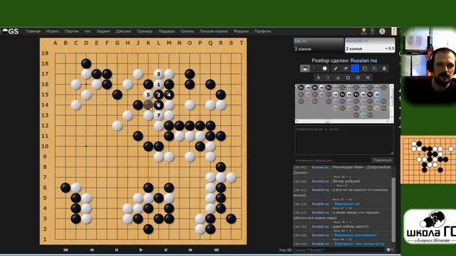 https://online-go.com/review/481605 Хорошая позиция за черных в начале Белые ищут борьбу и в конце концов черные попадают под атаку Счастливое спасение черных и уход в йосе И... смерть группы