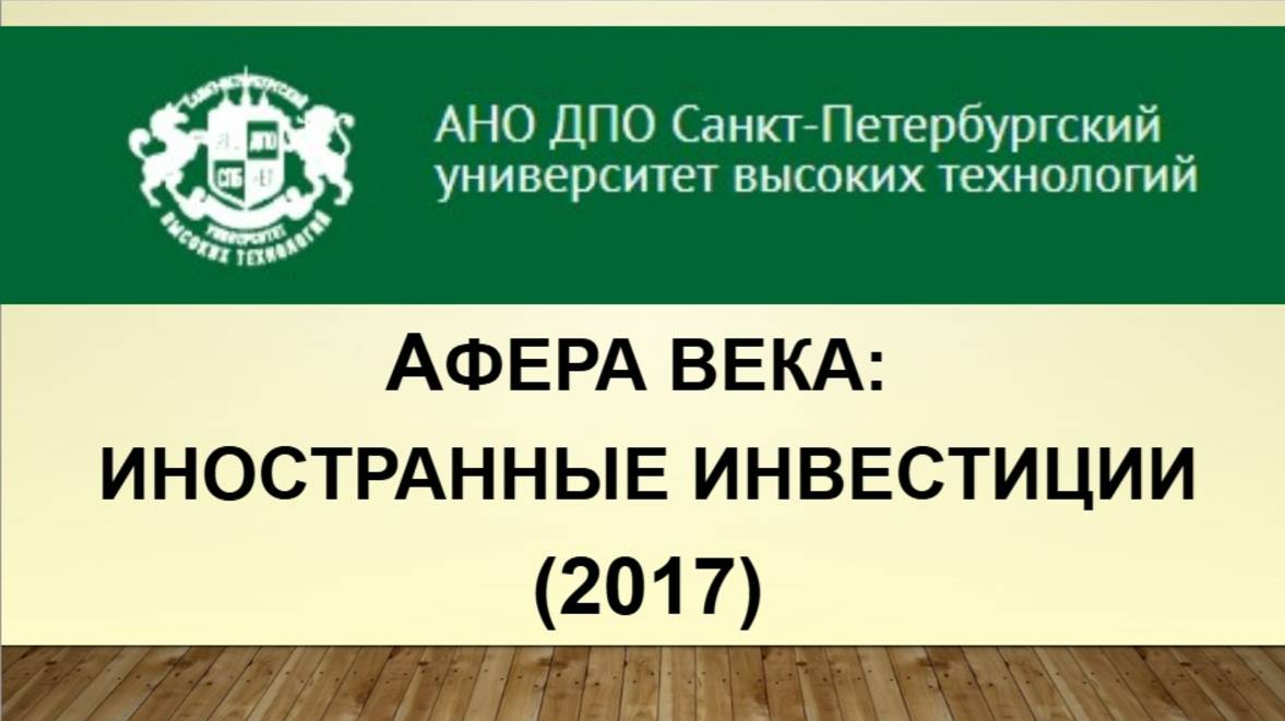 Афера века: иностранные инвестиции. Второй вебинар Книжной лавки на эту тему состоялся 23.08.2017 г. Ведущая Ирина Дедюхова Смотреть/читать по теме: Афера века: иностранные инвестиции. https://ogurcova-portal.com/afera-veka-inostrannyie-investitsii/ (2016/2017/2018/2025) Источники: Научно-технический портал «Технарь» https://ogurcova-online.com/ "Книжная лавка" https://ogurcova-portal.com/ "Литературное обозрение" https://litobozrenie.com/ Вебинар разработан и проведен в рамках образовательных программ АНО ДПО СПБ УВТ - Санкт-Петербургский университет высоких технологий https://univer.spb.ru/ в соответствии с законодательством об образовательной деятельности в РФ N 273-ФЗ по лицензии №3911 Комитета по образованию Правительства СПб https://univer.spb.ru/wp-content/uploads/2019/12/license015small-1.jpg