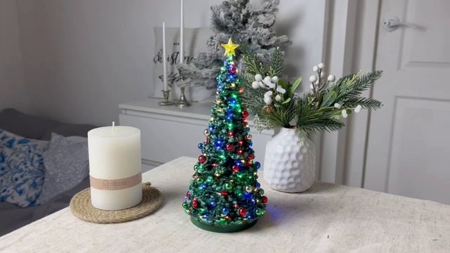 Декоративная фигурка 'Городская елка', полистоун, подсветка, 24 см, батарейки, 24954-lemax