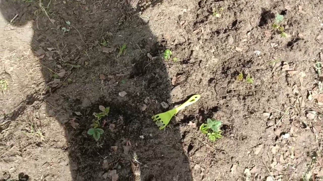 13 апреля продолжаю чистить грядку с клубникой.