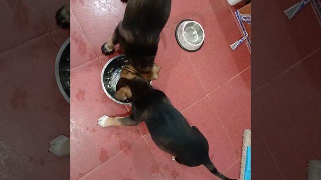 Как едят щенки Мира и Зара