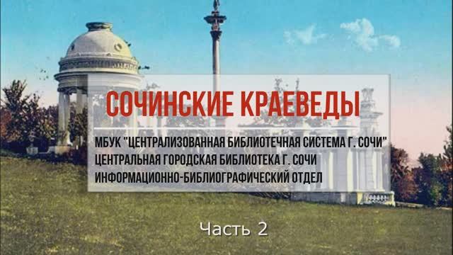 Сведения, которые добывают сочинские краеведы, составляют историческую мозаику, из которой складывается образ Сочи, уникальный не только по своим природным богатствам, но и благодаря своеобразному историческому прошлому. Центральная городская библиотека города Сочи. Все права на использованные материалы сохраняются за правообладателями. 30 мая 2020 года. https://library-sochi.ru/ #неРеальнокультурноСочи #фотографиигородаСочи #ВославугородаСочи #проСОЧИсь #Сочияпомню #Сочичерезвремя #центральнаягородскаябиблиотекаСочи #БиблиотеканаЧайковского #культурадляшкольников_цбсСочи #культурадляшкольников2020 #читаемсудовольствием #КультураСочионлайн #читаемсинтересом #времячитать_цбсСочи #читаемдетям #читаемдома #культураРФ #культураСочи #Культура_Кубани #цбсСочи #библиотекиРоссии #детскиебиблиотекиСочи #библиотекиСочи #Библиотеки_Кубани #читатьмодно #чтопочитать #книголюб #времячитать #читаем #стихи #книга #читайипомни #мыслужимкниге