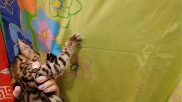 Василина-бенгалочка с милой нежной мордочкой, очень утонченная кошечка с ласковым, игривым характером. К 6 месяцам стадия файзинга закончится и кошечка наберёт интенсивнее золотистый окрас с более чёткой тёмной розеткой.